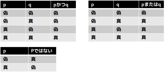 上記の式だけでは難しいと思いますので、真理値表を書いてみよう。