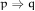 上記の式において、pを仮定、qを結論と呼び、またpを十分条件、qを必要条件と呼ぶ。そして、必ず十分条件のほうが必要条件より条件が厳しいという性質を持っている。また、条件付き命題は前述の論理演算の式で書き換えることができる。