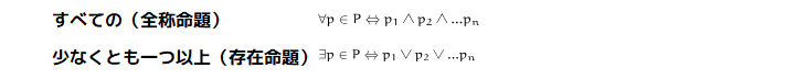特に「すべての」については細心の注意が必要である。「すべての」と言った以上、いかなる例外もなく「すべて」成り立たねばならない。一切の例外も許されない。論理式の構造を見れば自明である。そういった意味では「すべての」という主張を安易にすべきではない。
